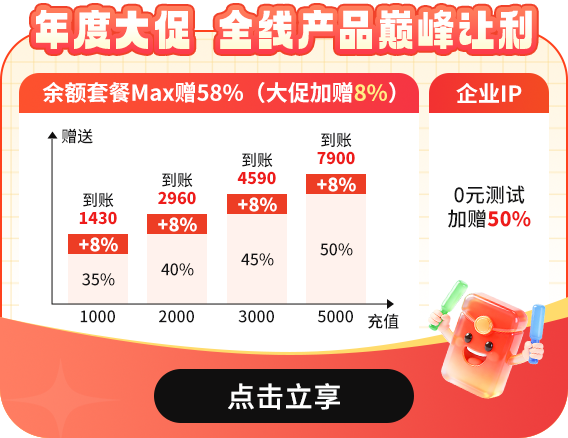 3~30分钟时效:0.005元/IP起