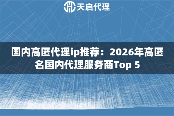 2026年高匿名代理服务商Top 5推荐