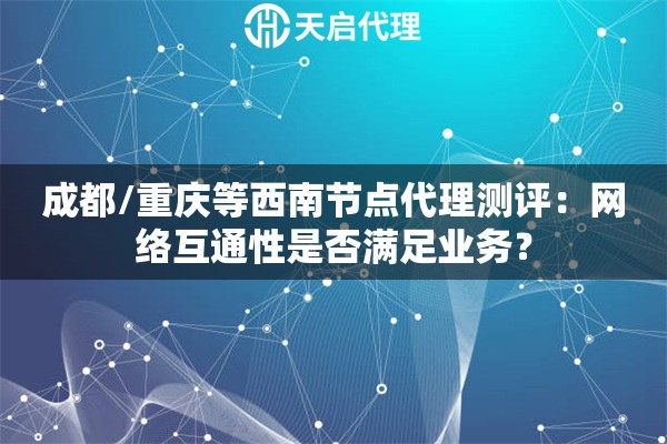 以成都、重庆为代表的西南节点代理IP,在网络互通性上完全能够满足大多数业务需求,特别是在覆盖中西部地区的业务场景下表现优异。选择的关键在于代理服务商是否拥有稳定、纯净、高质量的网络资源和完善的技术支持。天启代理凭借其运营商级资源、自建机房和高效的技术体系,在西南节点提供了可靠的服务,是值得考虑的选项。建议根据你的具体业务场景进行实测,找到最适合的解决方案。