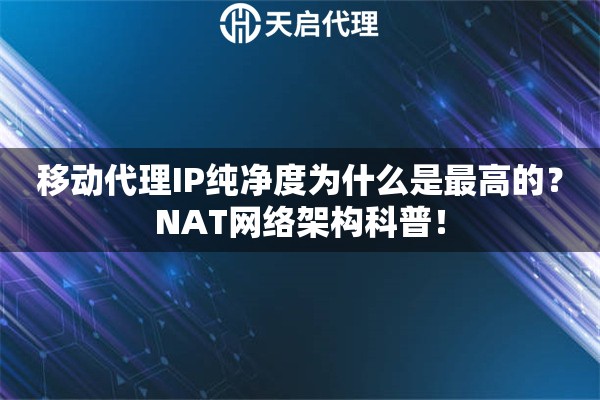 在代理IP的世界里,我们常常听到“纯净度”这个词。它就像评价一瓶水的质量,杂质越少,水质越好。对于代理IP而言,纯净度越高,意味着这个IP被目标服务器标记或限制的风险就越低,使用起来就越稳定顺畅。而在各类代理IP中,移动代理IP的纯净度口碑最佳,这背后的核心原因,就与它的网络架构——NAT(网络地址转换)——密切相关。