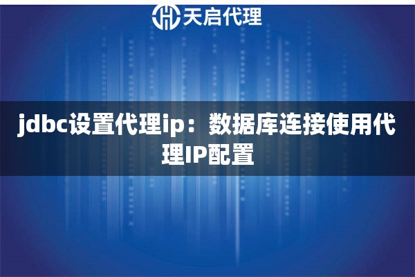 二、JDBC设置代理IP的两种核心方式