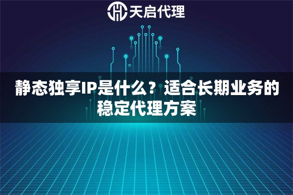 很多刚接触代理IP的用户会疑惑:静态独享IP就像你租了一间专属办公室。不同于动态IP的"共享工位",这个IP地址只供你一个人使用,不会和其他用户产生资源竞争。比如天启代理的静态IP服务,每个用户都会获得独立IP池,从源头避免了IP重复使用导致的封禁风险。